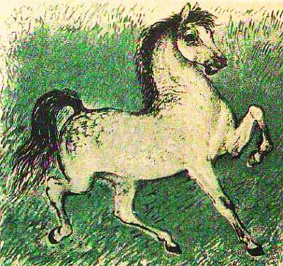 Это конь молодой по лугам бегает, звонко ржет, копытами землю бьет. Никто его еще не оседлывал, в телегу не запрягал. Растет он в колхозе, сил набирается; его чистят да холят для нового хозяина готовят. А хозяин-то будет хороший нашей армии командир. Ведь такому коню не возы возить, не телегу тащить. Такому коню на врага скакать, впереди всех командира на себе нести.