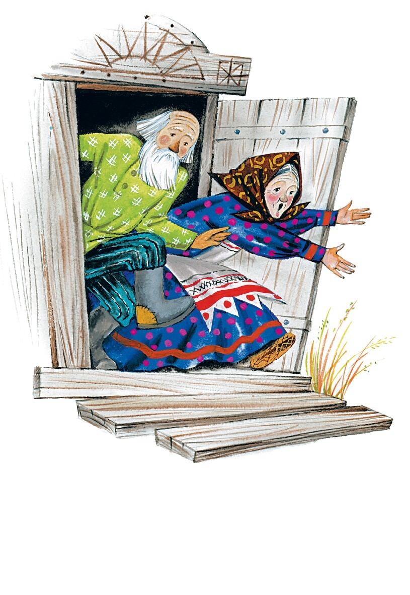 Вот раз коза ушла, волк побежал к избушке и закричал толстым голосом: