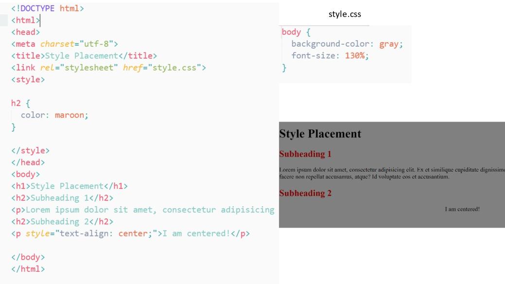 Теперь, ваш выбор размещения стилей в одном или другом месте не только влияет на возможность повторного использования стилей, но также влияет на то, какие объявления стилей переопределяют другие объявления стилей.