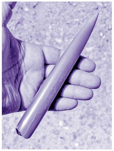 Охотники на мамонтов разбивали ростры вдоль и поперек. Получались желтые параллелепипеды. В четырех они проделали дырочки и, наверное, носили как подвески. Еще 19 без
