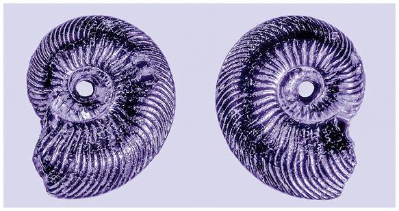 Хотя окаменелости на палеолитических стоянках сапиенсов находят регулярно, их все же придется считать экзотическими, редкими украшениями. Люди предпочитали обвешиваться костями, зубами и современными раковинами. Окаменелости не составят и одного процента в общей массе палеолитических украшений, хотя некоторые племена (или кто-то из членов племени) могли ими сильно увлекаться. Например, на охотничьей стоянке около Майнца палеолитические люди, имевшие в своем распоряжении достаточное количество современных им раковин, предпочитали вымершие: изящные удлиненные церициумы (Cerithium), которые во множестве залегают в известняке неподалеку. В раковинах делали отверстия и, вероятно, носили как бусы или подвески .