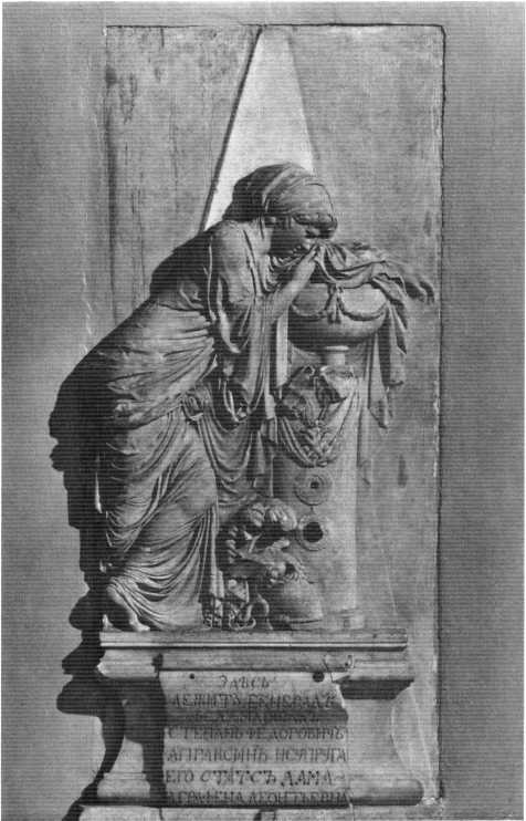 В начале 1780-х годов в мемориальном искусстве начинают работать первые русские скульпторы, бывшие воспитанники, а теперь первые профессора петербургской Академии художеств Ф. Г. Гордеев и И. П. Мартос. С творчеством этих выдающихся мастеров связано создание русского скульптурного надгробия, его национального художественного образа, пронизанного гуманизмом, присущим передовой русской культуре XVIII века, утверждавшей ценность человеческой личности и возвышавшей ее.