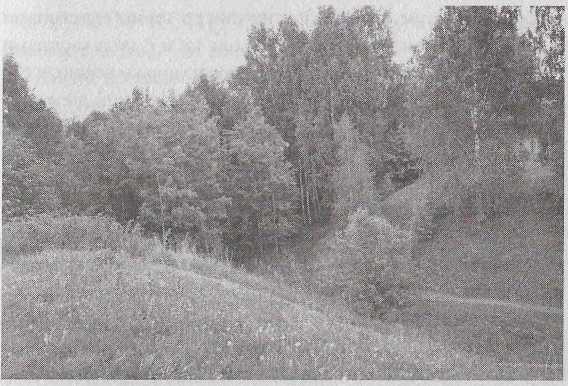 Поясним, что Рыбная Слобода это самая древняя часть Галича. «Древний Галич и городская крепость, состоявшая из насыпных валов, до нашего времени видимых на месте, называемом столбище между РЫБНОЙ СЛОБОДОЙ и женским монастырем» [825:1], с. 30. Оплывший участок одного из таких огромных валов в Галиче показан на рис. 1. На рис. 2 показан еще один участок мощных валов Галича. За прошедшие столетия они, конечно, оплыли, но до сих пор весьма внушительны. На рис. 3 показан макет од-