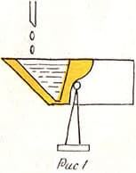 Задача решена. Мы вышли на ответ, используя метод ММЧ. Но нетрудно заметить, что при этом выявлено и устранено физическое противоречие («Момент силы, действующий на правую часть дозатора, должен быть малым, чтобы вся жидкость сливалась, и момент силы должен быть большим, чтобы емкость доверху наполнялась жидкостью»). Можно отметить и другое: дозатор, не имевший подвижных частей, теперь стал «динамичным», то есть техническая система вступила в третий этап развития. Следовательно, все идет как надо, решение найдено хорошее.