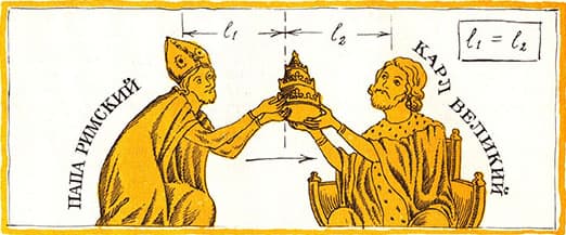 В 800 году папа римский должен был короновать Карла Великого. Перед Карлом возникла серьезная проблема. С одной стороны, надо, чтобы папа возложил корону на Карла: в глазах подданных это означало бы, что Карл стал императором законно, с согласия церкви. С другой стороны, нельзя допустить, чтобы папа возложил корону. Это означало бы, что власть Карлу дал папа римский. Захотел дал, захотел отобрал
