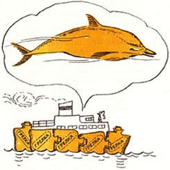 Такие корабли уже давно существуют, и вы их знаете. Это плоты. Корпуса у них нет, ведь бревна, из которых они сделаны, это груз. Но во время плавания бревна служат и корпусом. В английском патенте 1 403 191 описан корабль с длинным, как у змеи, корпусом из металлических ящиков-контейнеров. Крохотная «голова» буксирующая часть с двигателем тянет гибкое «туловище», собранное из контейнеров.