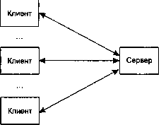 Рис. 1.2. Сервер, который одновременно обслуживает множество клиентов