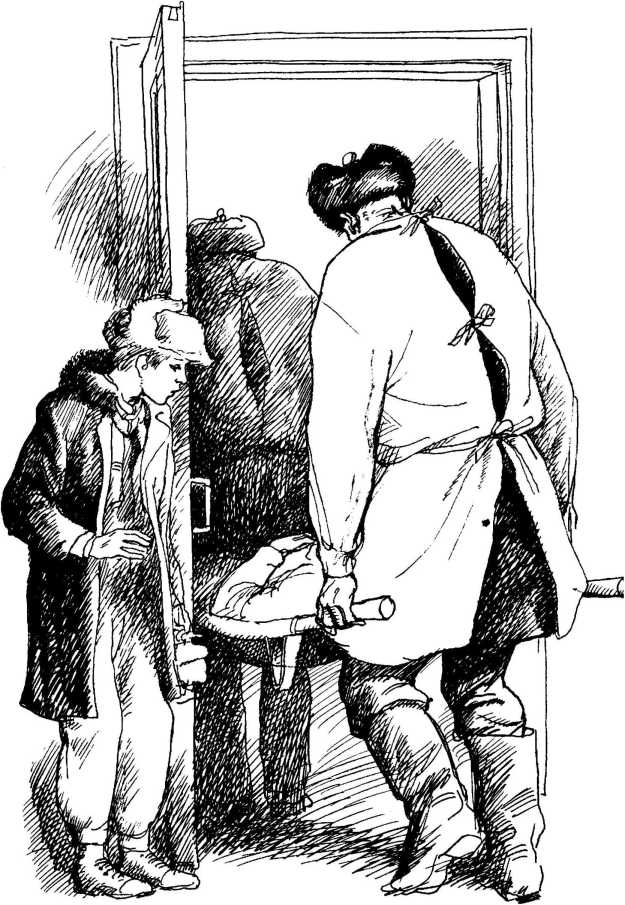 почтового зала стояла конторка, похожая на деревянный гриб. Мальчик прислонил коньки к ножке гриба, а телеграфный бланк положил на шляпку. Не торопясь, стараясь уместить буквы в строке, он вывел адрес. Мальчик старался писать как можно аккуратнее, но почерк у него был нескладный, а буквы получились очень вытянутыми, им были малы строчки телеграфного бланка.