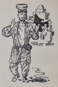 Так-то вот мечтатель и задал пир. Задал пир, взял дочь судьи Хурдака в жены. После пира стал просить у судьи разрешения уйти, хотел отвести молодую жену к себе домой. А судья Хурдак его не пускает, требует: дай мне, мол, за дочь еще столько же да еще второй же пир задай. Тут мечтатель разозлился и выпустил из рук горшок с молоком: хотел выхватить саблю и снести голову судье Хурдаку. Горшок упал и разбился, кислое молоко все разлилось. Огорчился мечтатель, кончились его мечты, а под ногами у него черепки да молоко разлитое. Он о черепки споткнулся и шлепнулся.
