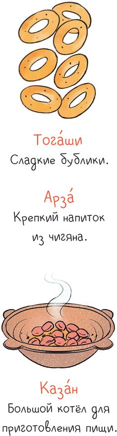 Прискакали они к юрте мангадхая, и пятиглавый воевода первым делом принялся за еду. Он слопал в один присест тысячу тогашей, выпил два колодца чигяна и осушил три колодца арзы.
