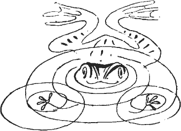 Подбежал к знакомому пруду в пруду жёлтые листья плавают, а на большом листе Лягушонок сидит.