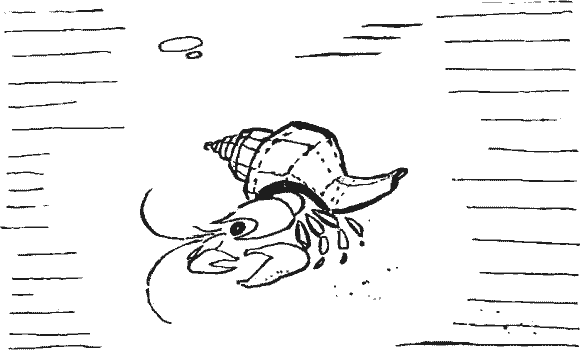 А кругом валялось многое множество раковин. И вот, хорошенько подумав, он решил так: «Самое подходящее место для рака это, конечно, раковина; а самый подходящий жилец для раковины это, конечно, рак. И когда рак залезет в раковину, его уже никто не ущипнёт, или я ничего не понимаю ни в тех, ни в других!»