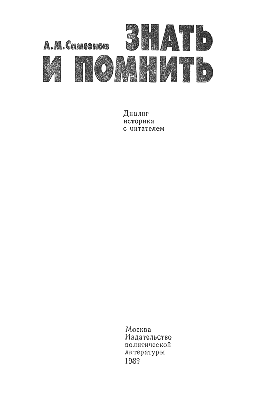 А. М. Самсонов ЗНАТЬ И ПОМНИТЬ Диалог историка с читателем