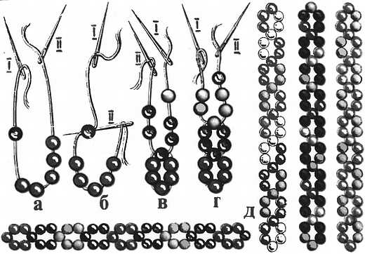 а-в на одной нити; г на трех нитях
