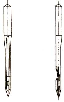 Впрочем, для кожи, джинсовки лучше иметь иглы особой заточки, граненые. Их назначение всегда указано на упаковке. Для трикотажных полотен выпускаются иглы с чуть округленным острием, чтобы не рвать петли. Бывают сдвоенные иглы с разными интервалами между остриями, но подходят они только к машинам, имеющим на пластинке и лапке широкую прорезь под «зигзаг», два стержня для двух бобин и три диска-шайбы для натяжения двух верхних нитей. Существуют еще около десятка специализированных игл, если они вам попадутся, постарайтесь разобраться в надписях или картинках (рис 1).