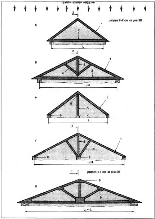 Рис. 18. Схемы стропильных систем крыш: