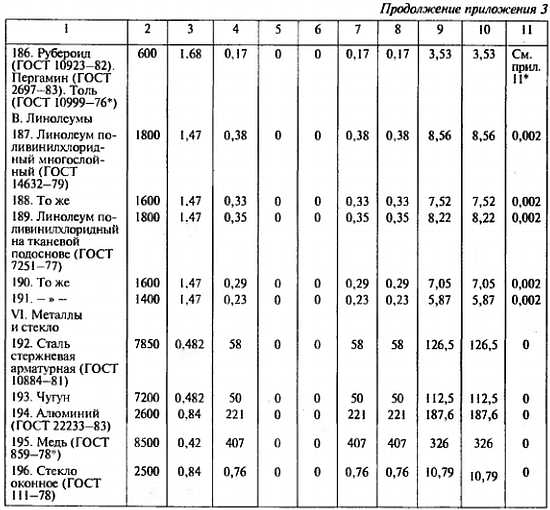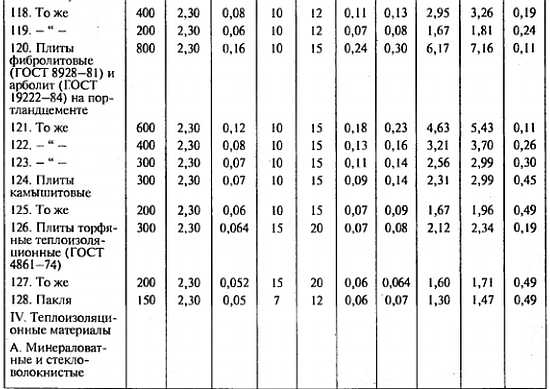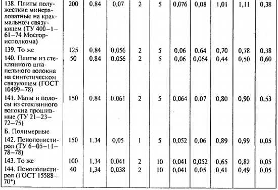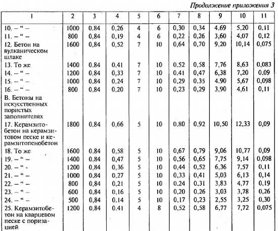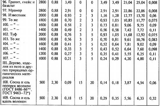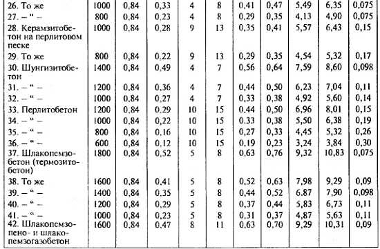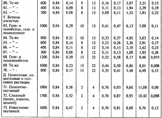 2. Характеристики материалов в сухом состоянии приведены при массовом отношении влаги в материале, ω, %, равном нулю.