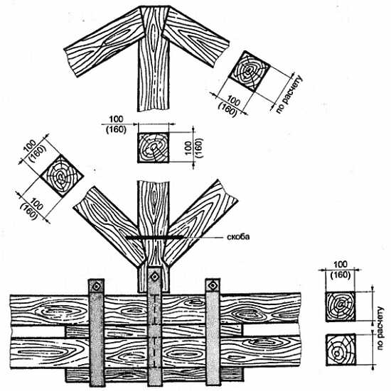 Рис. 28. Узлы 12, 13. Гвоздевое соединение элементов висячих стропил