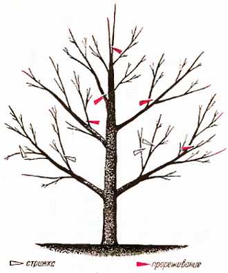 Когда дерево начинает плодоносить, надо прежде всего освободить его от сухих, защищающих, переплетающихся и трущихся веток. Высоту дерева ограничивают 3 м, при этом в верхней его части удаляют слабые обрастающие ветви, чтобы свет проникал в глубь кроны.