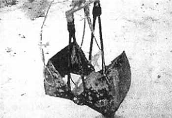 Ковш подвешиваем на трос или цепь колодезного ворота. При опускании конструкции в глубь колодца срабатывает спусковой механизм (стержень-защелка), производится захват ила. При очередном опускании взводим спусковой механизм ковша в исходное положение, разведя «челюсти», фиксируя защелку в кольце. Зацепленный за кольцо ковш фактически висит на стержне, не давая пружине распрямиться. При опускании на дно сила трения между защелкой и кольцом ослабевает и пружина выталкивает стержень. При подъеме ковша «челюсти» сходятся, захватывая ил. На мой взгляд, очень простое для понимания и изготовления приспособление, главное нужное, только и надо применить листовой металл, а из умений простые операции слесарных, токарных и сварочных работ. Сейчас этот опытный образец нас уже не устраивает. Мы разработали более производительный аппарат, т. е. увеличили ковш в длину в 2 раза и в 0,5 в высоту. Соответственно увеличился вес за счет увеличения толщины листового металла (2,5 мм). Это дало хороший результат. Но теперь на подъеме работают 23 человека. Еще следует учесть, что перед чисткой из колодца, естественно, надо выкачать воду и немедленно приступать к работе.