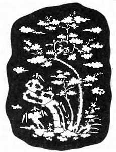 рисунку, вдавливают отполированные кусочки перламутра. Чтобы подчеркнуть выразительность рисунка, дополнительно прокладывают отполированную металлическую проволоку или кусочки ее. После подсыхания пасты поверхность изделия в 23 слоя покрывают быстросохнущим лаком и оправляют в металлический ободок.