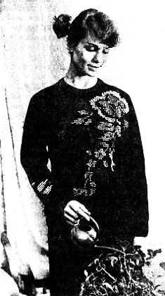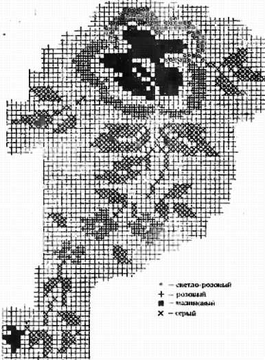 Узор в виде цветов и листьев вышивают крестиком (рис. 51). На правом рукаве выполнены 3 листочка и маленький цветочек.