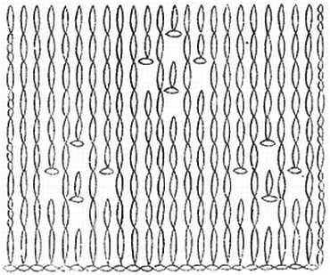 Узор выполнен столбиками с накидом и воздушными петлями (рис. 53).