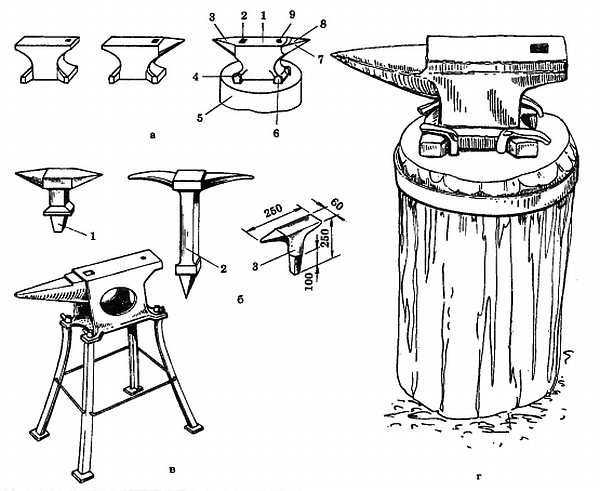 в переносная наковальня; г наковальня, укрепленная на стуле