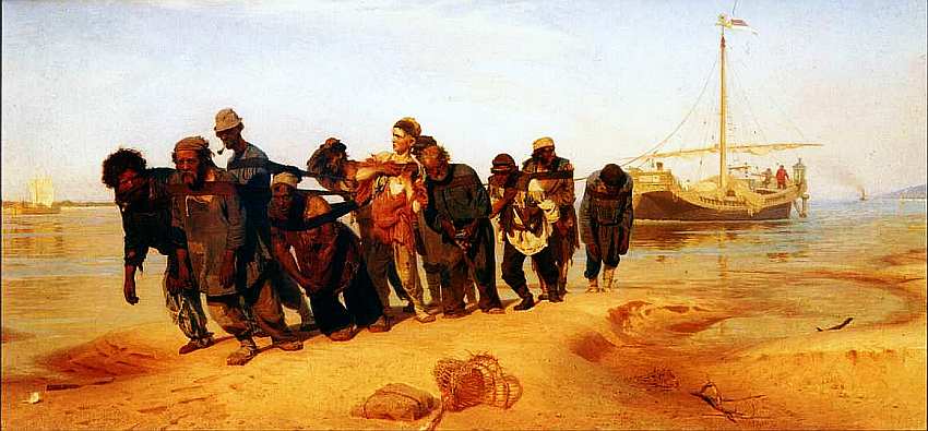 Увиденные молодым Репиным в 1869 бурлаки, которые тащили неподъемную грузовую баржу, взволновали его душу. Эту тему, уезжая на Волгу, художник разрабатывал в течение ряда лет. Запечатленное угнетение бедных являло собой призыв