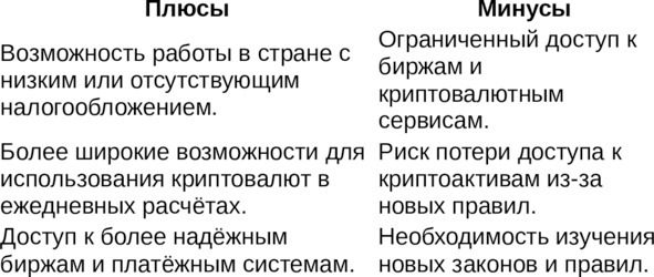 12.11 Плюсы и минусы смены страны для работы с криптовалютой