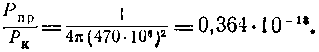 Величина SПР зависит от геометрической конфигурации приемной антенны. Допустим, что SПР = 1 м2. Тогда при максимальном удалении радиопередатчика автоматической межпланетной станции от Земли, равном 470 000 км (с этого расстояния именно и производилась передача) получим:
