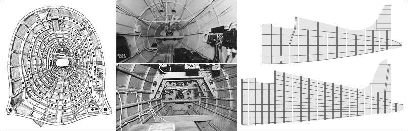 3. Схемы силового набора фюзеляжей F4F (сверху) и F6F (снизу). Хорошо виден заметно уменьшенный шаг как шпангоутов, так и стрингеров.