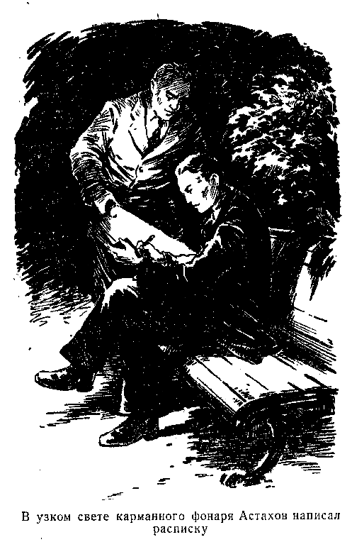 В узком луче света карманного фонаря Астахов написал расписку, подписал и, передав блокнот Евсюкову, получил деньги.