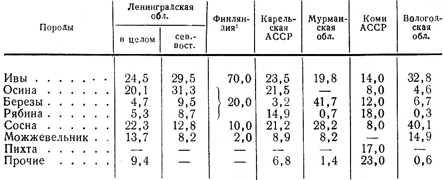 В большинстве районов Финляндии, на Кольском п-ове, в Карелии, на северо-востоке Ленинградской обл. и в бассейне Верхней Печоры первостепенную роль в зимнем питании играют лиственные породы, главным образом ивы, а сосна, как правило, стоит на втором или даже на третьем месте. Например, в Финляндии на долю ив приходится в среднем 70 % зимнего рациона, а на севере ее 90 % (Sainio, 1956 a, b). К концу зимы роль ив уменьшается до 50 %, а сосны и березы возрастает до 20 % (Loisa, Pulliainen, 1968). В восточной части финской Лапландии, где преобладают сосновые и березовые леса, сосна составляет в среднем 45 % зимнего рациона, береза 28 % (Pulliainen, Loisa, Pohjalainen, 1968).