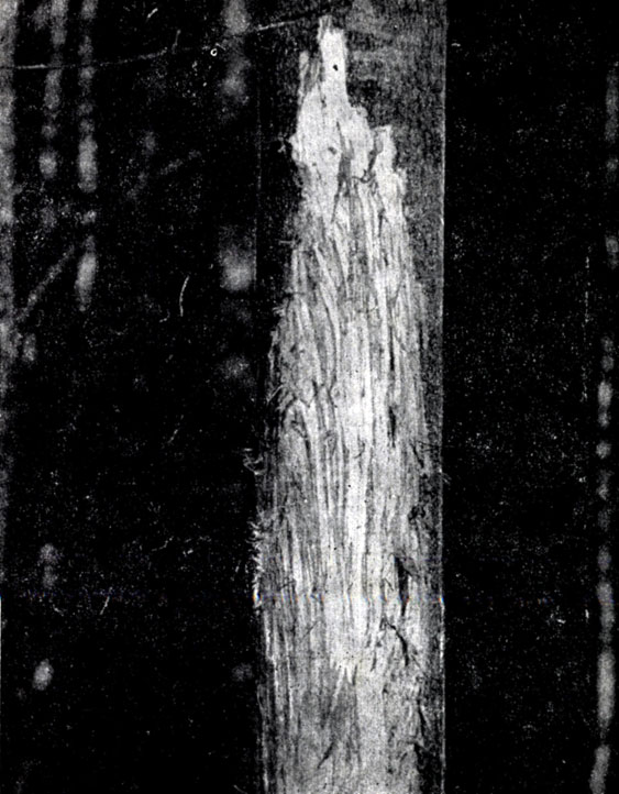 Рис. XXXIII. Ствол осины, обглоданный лосем. Фото Г.А. Новикова
