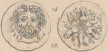 Очень интересная монета. Древние греки, несмотря на свою древность, провели достойное даже по современным меркам биогеографическое районирование, показав сильфий представителем различных биотопов , обозначенных животными, предпочитающими разные условия обитания (рис. 8). Отчёт по результатам исследования для широкого ознакомления опубликован на монете в виде своеобразной инфографики .