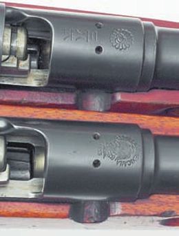 Видны клейма на патроннике вверху японская винтовка тип «38» калибра 6,5 мм, внизу винтовка мексиканского заказа 1910 г. под патрон 7x57 Mauser