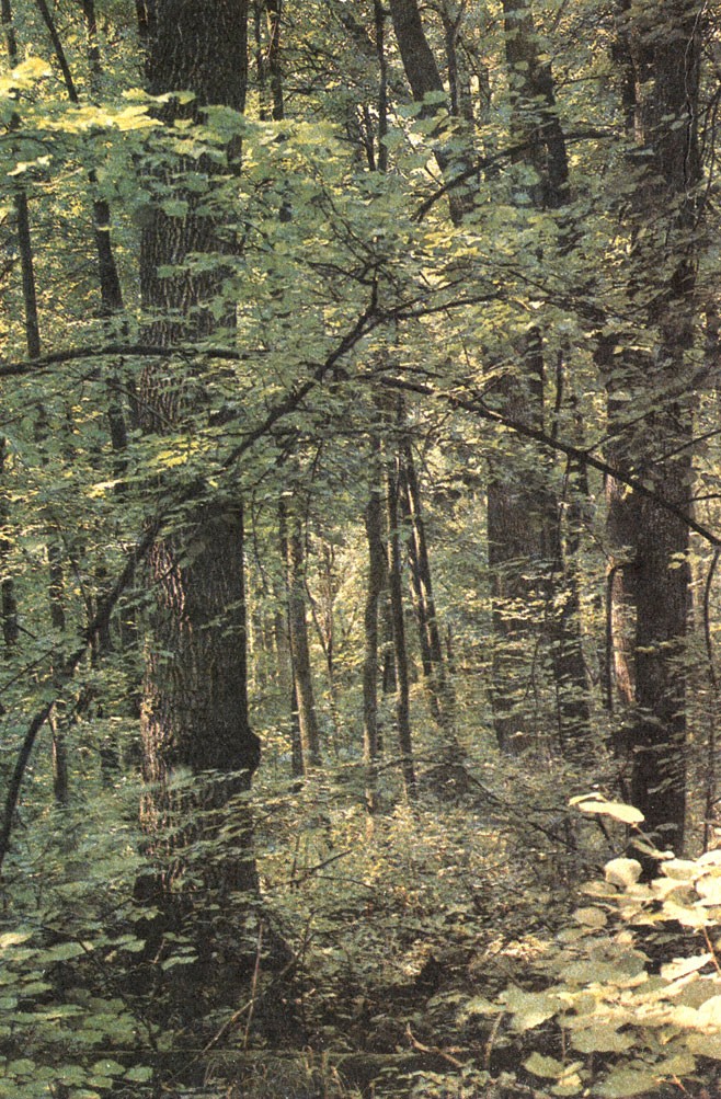Обратимся теперь к составу древесных пород, образующих наши леса. В разных районах страны видовой состав деревьев в лесу не одинаков. Различно также и число видов деревьев. Если идти по северному хвойному лесу, то редко можно насчитать больше 2-3 древесных пород. Богаче в этом отношении наши среднерусские дубравы. Здесь можно встретить до десятка разных деревьев (дуб, липа, ясень, несколько видов клена, вяз, ильм и др.). Все это имеет свои причины. Число видов деревьев в лесу находится в прямой зависимости от того, насколько благоприятны природные условия территории климатические и почвенные. Чем лучше эти условия, тем богаче видовой состав деревьев. Северные хвойные леса имеют мало древесных пород, потому что они развиваются в суровых природных условиях в холодном климате и на относительно бедных почвах. Дубравы, напротив, распространены в районах с довольно теплым климатом и на богатых почвах. Именно вследствие этого видов деревьев здесь гораздо больше.