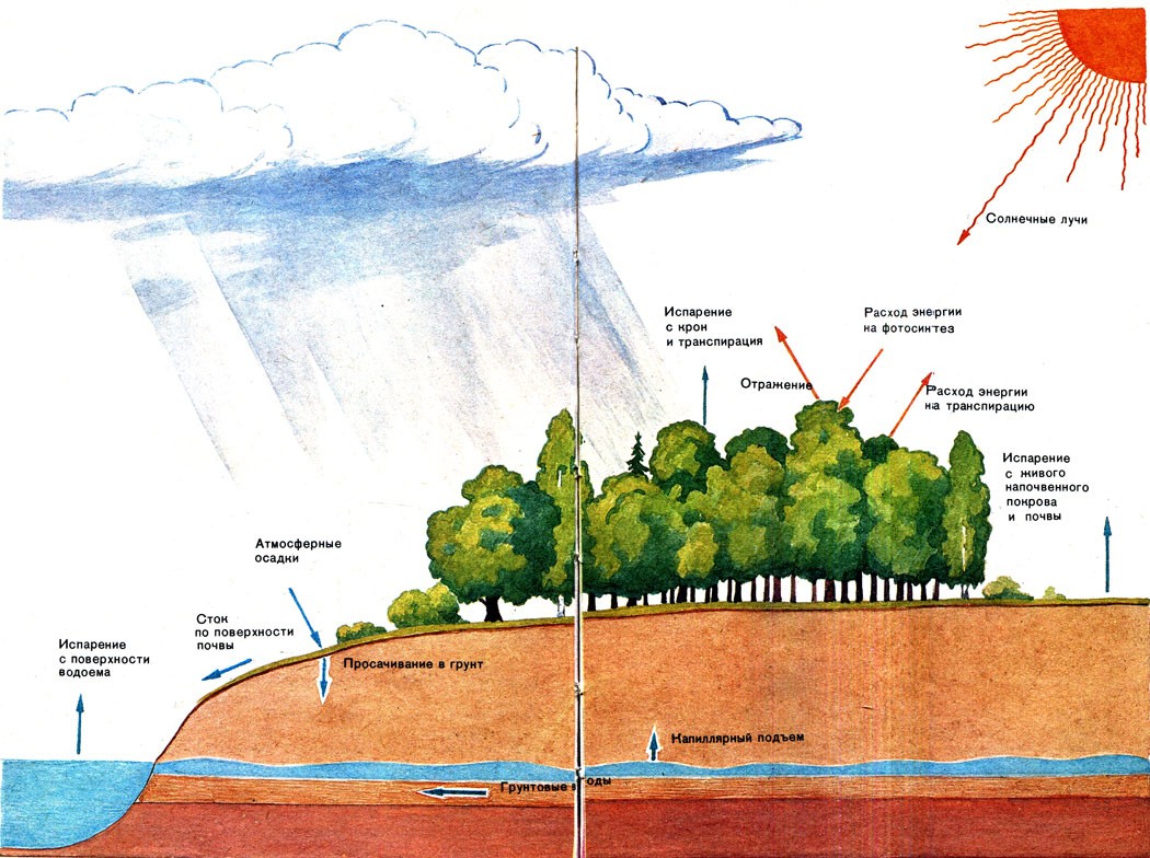 Круговорот воды и преобразование солнечной энергии в лесном биогеоценозе