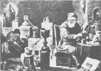 Алхимик. С картины фламандского художника Д. Тенирса. XVII в.
