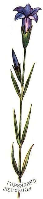 Мне больше по душе горечавка алтайская. Она как миниатюрный граммофон. Густая латка-дернинка из мясистых, толстоватых листьев. Крошечный стебелек в два пальца высотой, а на нем огромный в сравнении со стеблем лиловый цветок в виде узкой рюмки.
