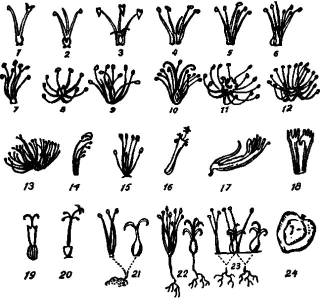 Для 16-22-го отряды устанавливаются на основании разного количества тычинок.