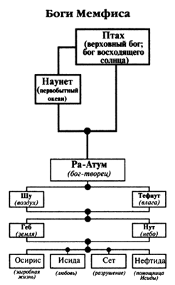 Наибольшее распространение в Древнем Египте имели три основных религиозных культа, связанных с наиболее крупными религиозными центрами Гелиополем, Гермополем и Мемфисом. Жрецы каждого из культов старались доказать, что именно их система наилучшим образом представляет историю, защищает интересы и благосостояние народа.