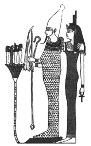 (рис. 36) один из старейших богов, которому в Египте поклонялись с древнейших времен. Уже к 2400 г. до н. э. его культ имел широкое распространение. Первоначально он олицетворял собой заходящее солнце. «Книга мертвых» рассказывает нам следующую историю: