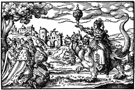 Вавилонская блудница верхом на звере с семью головами, изображенная на этой немецкой гравюре неизвестного автора, является одним из апокалиптических образов Откровения Иоанна Богослова. Число 7 играет огромную роль в этой книге.