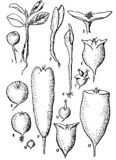 * Здесь и далее длина и ширина семядолей меньше 1 мм.