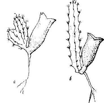 А у таких кактусов, как мамиллярия и мелокактус, их практически трудно различить. У некоторых кактусов семядолей может быть не две, а три. Вниз от семядолей идет подсемядольное колено (или гипокотиль), который так же, как и семядоли, сочный (рис. 2).