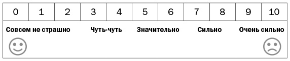 Не всегда очевидно, какие ситуации ваш ребенок сочтет самыми пугающими, поэтому важно спросить, что думает он. Чтобы понять, как расставить шаги по порядку, попросите ребенка оценить, насколько он испугался бы при выполнении каждого, по шкале ниже.