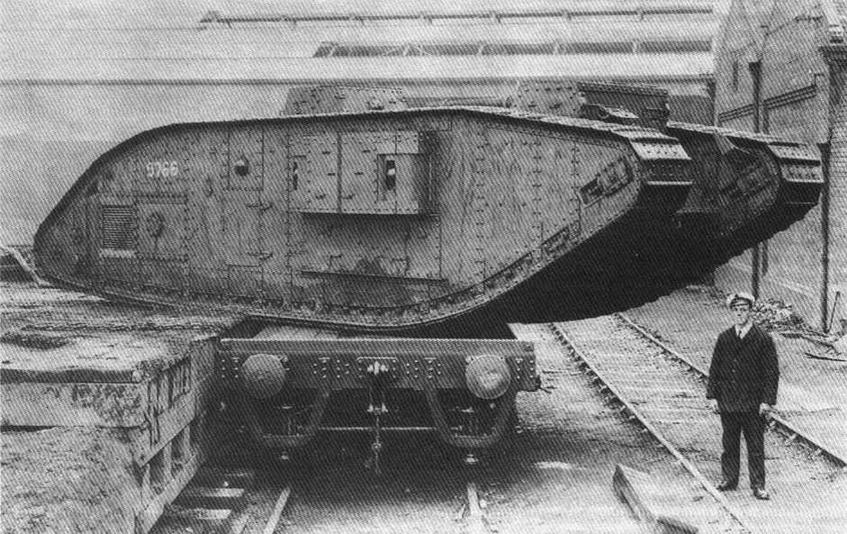 Осенью 1917 года в связи со сражением у Камбрэ встал вопрос о формировании танковых рот для перевозки пехоты. И в 1918 году на основе Mk V со старой "узкой" гусеницей создали танк Mk IX машину снабжения для боевых танков и транспортер для пехоты. Mk IX продолжал линию тяжелых "ромбовидных" танков.