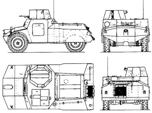 Mk II броневая крыша и башенка с пулеметом Bren. Боевая масса 2,98 т, бронирование 10 мм, колесная формула 4x4.
